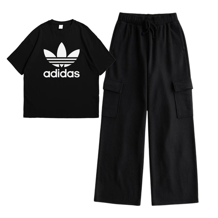 Black adi drop shoulder t-shirt with cargo trouser set