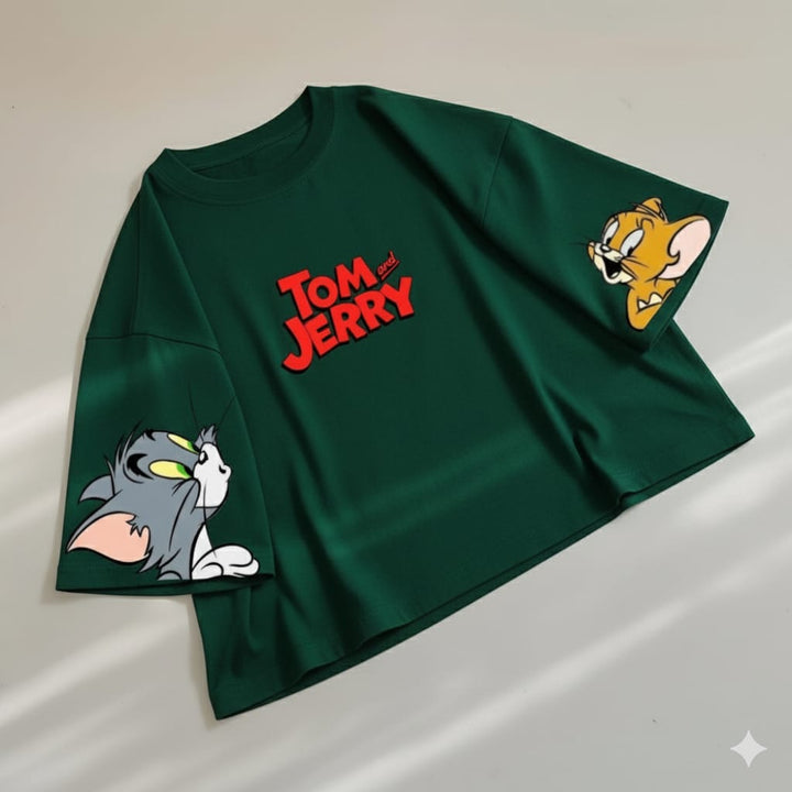Green Tom and Jerry oversize drop shoulder t-shirt