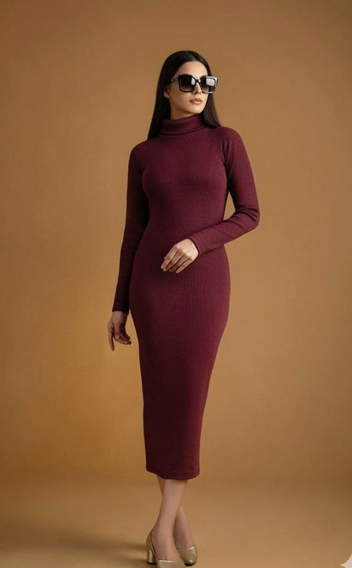 Maroon highneck bodycon dress