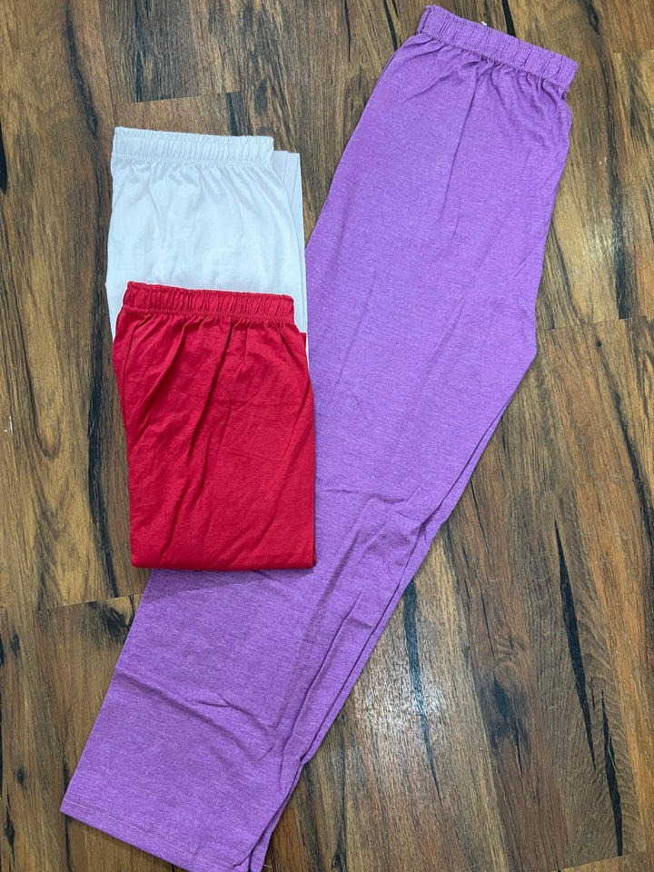 Pack of three plain cotton jersey trousers ( purple - red - white)