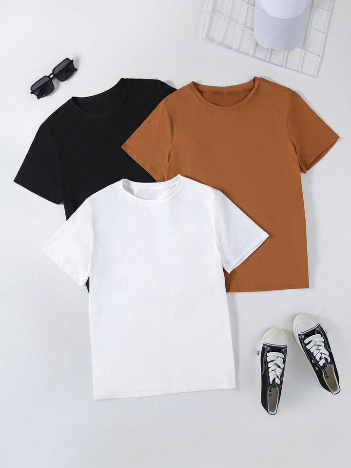 Pack of three plain t-shirts for kids ( black - white - brown)