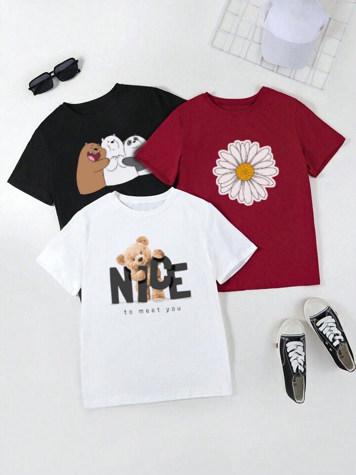 Pack of three t-shirts for kids ( bears - nice - flower)