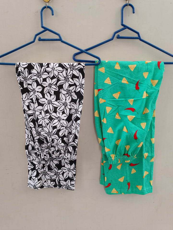 Pack of two cotton jersey trousers (black flowers - green crackers)