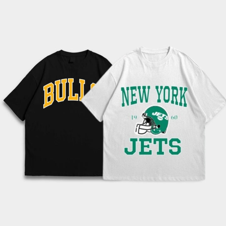 Pack of two drop shoulder oversize t-shirts ( blk bulls - WT jets)