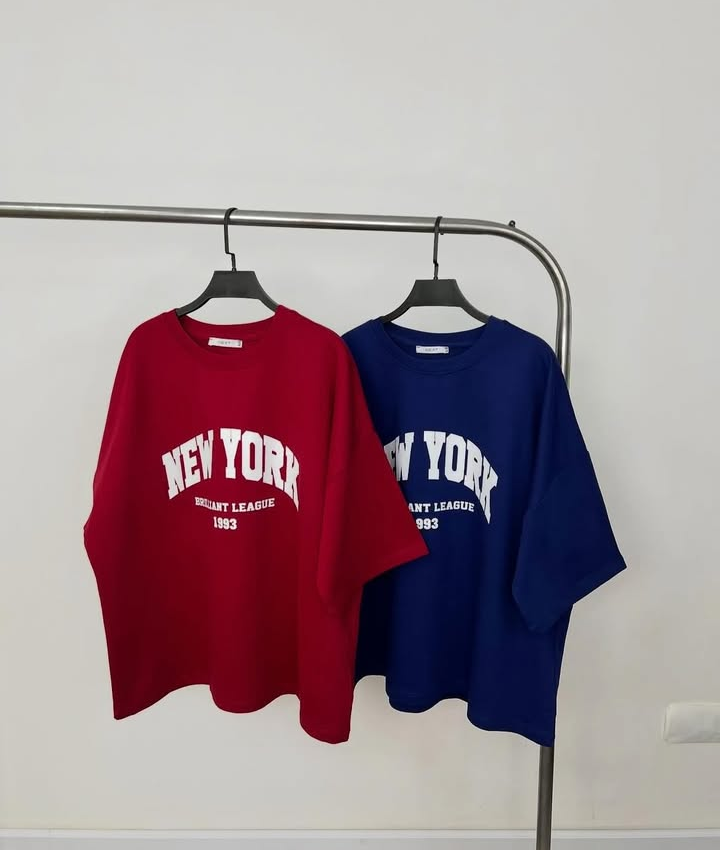 Pack of two drop shoulder oversize t-shirts ( red NY - navy NY)