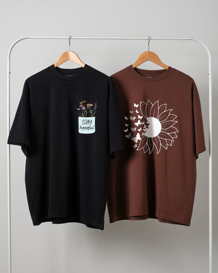 Pack of two drop shoulder t-shirts (stay hopeful - sunflower butterfly )