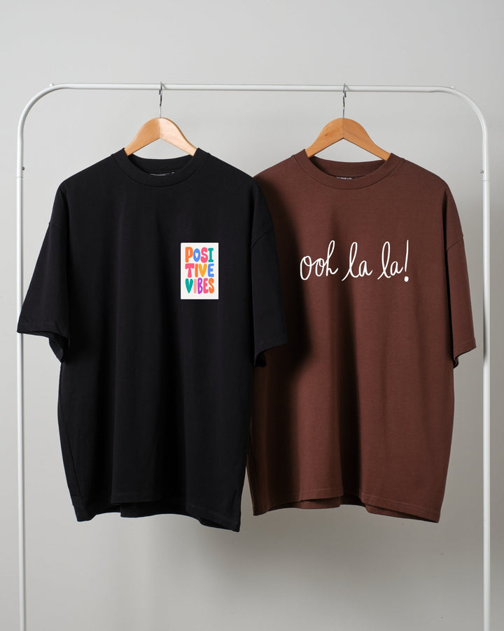 Pack of two drop shoulder t-shirts (posotive - oh lala)