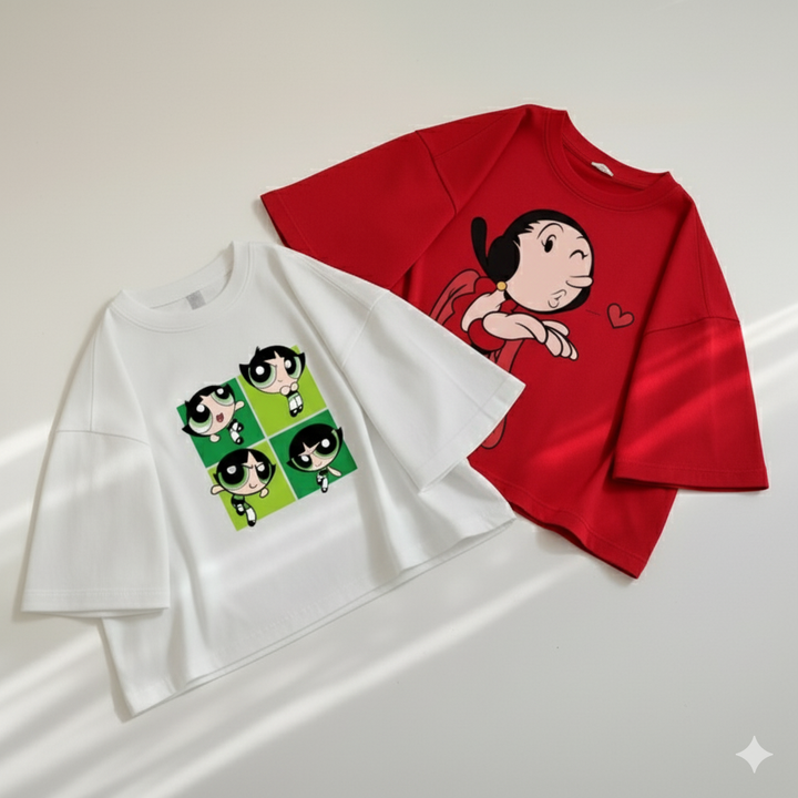 Pack of two oversize drop shoulder t-shirts ( buttercup wt - red oyl )