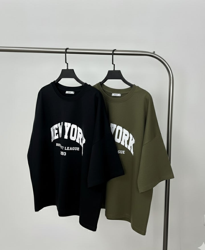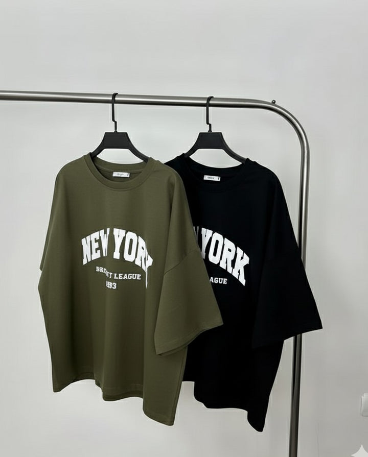 Pack of two oversize drop shoulder t-shirts (NY blk-NY olive)