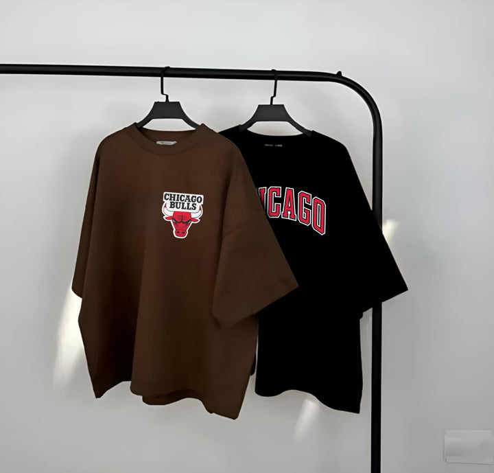 Pack of two oversize drop shoulder t-shirts ( blk Chicago- brown bulls)