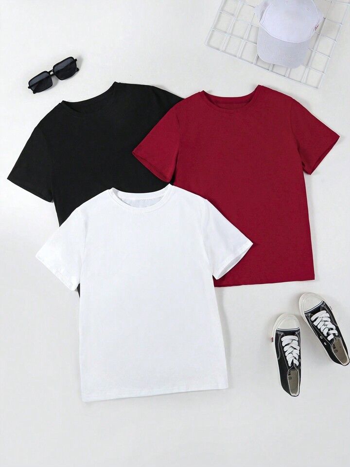 Pack of three plain t-shirts for kids ( black - white - maroon)