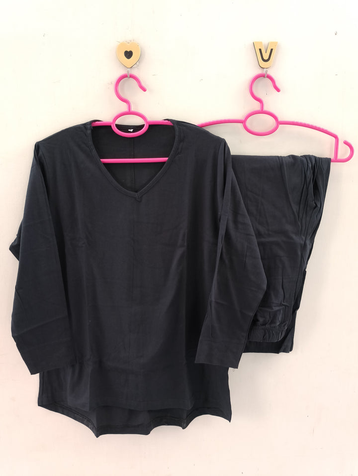 Plain black cotton jersey nightsuit
