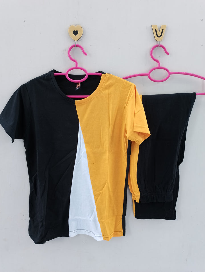 Yellow abstract cotton jersey nightsuit