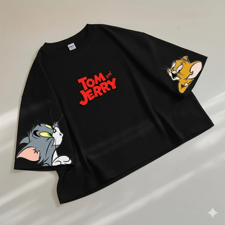 Black Tom and Jerry oversize drop shoulder t-shirt
